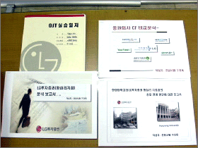 인턴 사원에게는 과제들을 해결하는 기회가 주어진다. 나를 담당하고 있는 직원이 부여하거나, 내 스스로 기획한 과제들을 해결하는 과정을 거치는 것이다. LG증권 왕십리지점과 대우증권 성동지점의 비교분석, '각 증권 회사의 CF비교', '한양대 학생들과 LG투자 증권 왕십리 지점과의 연계 활동 및 지원 방안' 등이 내가 도전했던 과제들이다. 실질적이고 유익한 과제 수행은 인턴 생활을 좀 더 보람있고 즐거운 일로 만들어 주는 활력소가 됐다.