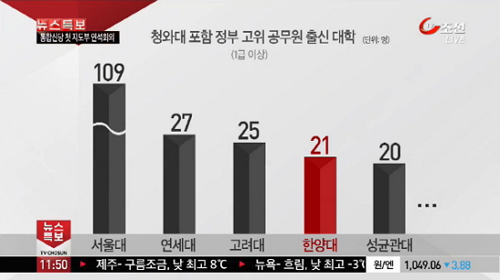 최근 한양대 출신 인사들이 정부 주요 관직에서 약진에 약진을 거듭하고 있습니다. 공기업 및 준정부기관장 등의 출신 대학을 분석한 결과 한양대 출신 인사가 성균관대를 넘어 급부상하고 있다는 것인데요. '한양대 전성시대'에 대한 자세한 소식이 5일자 <서울신문>과 <TV조선>을 통해 전해졌습니다.
