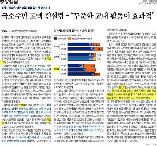 입학사정관(학생부 종합) 전형 합격자 사교육 덜 받아
