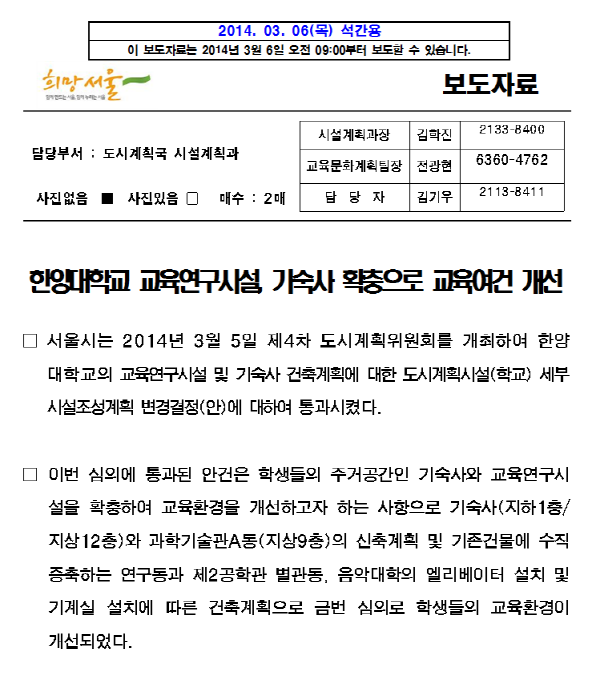 어제 서울시에서 한양대 교육환경 개선 신ㆍ증축 허가 내용을 발표했는데요. 알기 쉽게 정리해봤습니다~