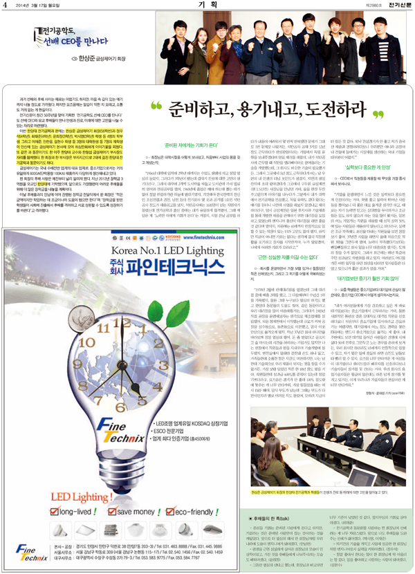 17일자 <전기신문> '전기공학도, 선배 CEO를 만나다'에서는 한양대 전기공학과 편이 전해졌습니다. 한양대 동문인 한상준 금성제어기 회장(56학번)과 전기공학과 후배들이 만나 인생과 진로, 미래에 대한 고민을 허심탄회하게 나누는 자리가 마련된 것인데요. 이날 학생들은 한 회장에게 대학시절과 꿈, 위기 극복 이야기 등을 전해들으며 전기공학분야 CEO로 성장할 수 있는 발판을 마련했습니다. 후배들과의 만남에 이어 장학금 전달식을 가진 한 회장은 "장학금을 받은 학생들이 사회에 진출해서 후배를 격려하고 서로 성원할 수 있도록 성장하기를 바란다"고 전했습니다.