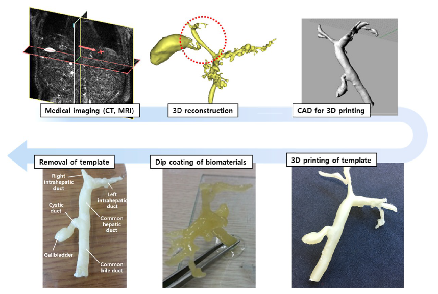 최동호 교수 연구팀은 3D 프린터를 사용해 문제를 해결했다. 의학용 3D프린터로 모형을 제작한 후, 담도 세포를 만들 수 있는 줄기세포를 모형에서 배양해 뒤덮게 만든다. 그 후 모형을 제거하면 만들고자 한 형태의 담도가 제작된다. 최 교수 연구팀은 토끼의 담도를 제작해 이식하는 실험을 통해 만들어진 담도의 활용성을 확인했다. 최 교수는 “이제 담도에 문제가 생겼을 때 새로이 이식 할 수 있게 됐다”며 이번 연구의 의의를 밝혔다.