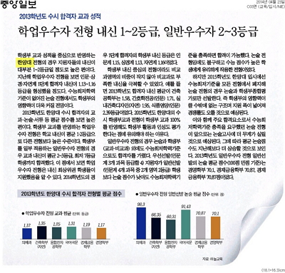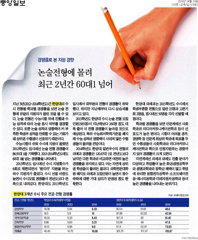 또한 <중앙일보>에서는 한양대의 지난 3년 간 수시전형과 합격자 점수를 분석하여 2015학년도 입시 지원 경향을 예상해보기도 했습니다.