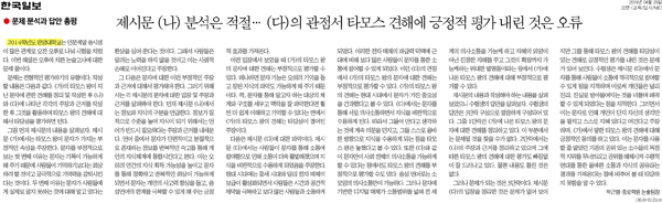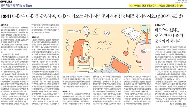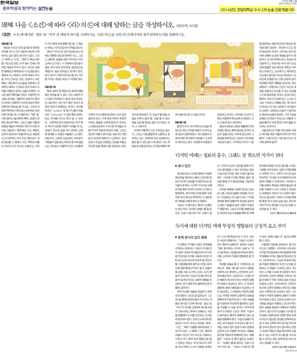 5월 13일자 <한국일보>에도 2014년도 한양대학교 수시 2차 논술 기출문제가 소개되었네요.