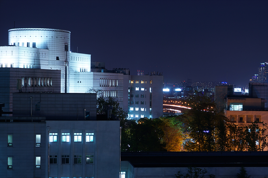 - 지금까지 사진을 담았던 곳에서 반대로 나와, 병원쪽으로 이동 하시면 이런 풍경도 만나보실 수 있습니다. 병원 건물은 다소 낡았지만, 그래도 밤에 빛나는 병실 창문과 더불어 동대문쪽 풍경까지 한 눈에 감상 하시면 나름 매력적입니다. 커플들에게만 알려주지만, 사람들은 이 쪽으로는 잘 오지 않으니 데이트 하실때 참고 하세요.