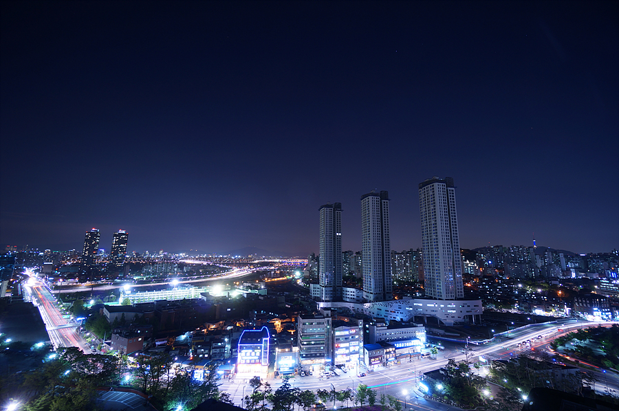 - 성동교에서 세왕병원 고갯길까지 도로를 한 눈에 바라볼 수 있는 사진 입니다. 왼쪽에서 오른쪽으로 시선을 이동 시키며 빛의 궤적을 따라 감상하시길 추천합니다. the #의 입주가 끝나고, 창에 불이 들어오면 더욱 매력적인 야경이 될 것 같습니다.