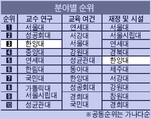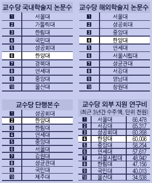 '교수 연구' 부문 4개 지표서 연세대 모두 눌러