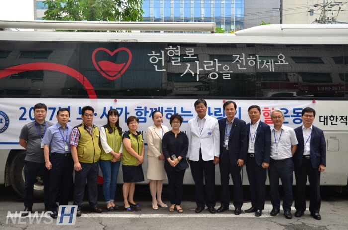 한양대학교구리병원(원장 김재민)은 지난 8일 동관 앞 주차장에서 '노·사가 함께하는 사랑의 헌혈운동'을 펼쳤다. 이번 행사에 모인 헌혈증은 입원 중인 어려운 이웃을 위해 사용된다.오전 9시부터 시작된 이번 헌혈행사는 사랑의 나눔을 실천하려는 교직원들의 발길이 꾸준히 이어졌다.김재민 신경외과학교실 교수(병원장)는 “참여해준 많은 교직원들에게 감사하며 앞으로도 어려운 환자들을 위한 행사를 꾸준히 진행하겠다”고 말했다. ▲지난 8일 한양대구리병원 동관 앞 주차장에서 열린 '노·사가 함께하는 사랑의 헌혈운동'에 참여한 교직원들이 기념사진을 찍고 있다.