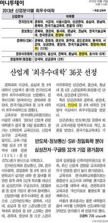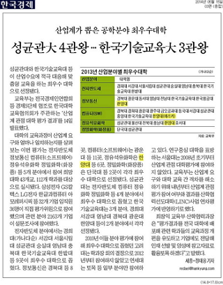 지난 14일 교육부와 한국대학교육협의회가 '2013년 산업계 관점 대학 평가 결과'를 발표했습니다. 이번 평가에서 한양대 서울캠퍼스는 정보통신분야와 정유석유화학에서, ERICA 캠퍼스는 컴퓨터(SW) 분야에서 최우수대학으로 선정됐는데요. 이같은 선정 소식이 15일자 <머니투데이>, <한국경제>를 통해 소개되었습니다.