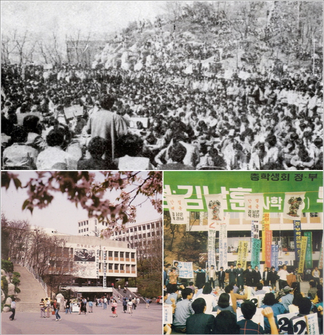 1985년 4월, 선거의 열기는 뜨거웠다. 총학생회장 선출을 위해 한마당에서 열린 학견발표회에 운집한 학생들은 각자 지지하는 후보를 향해 열띤 응원을 펼쳤다. 선거운동은 있어도 학생들의 후보 응원은 없는 요즘과는 사뭇 다른 분위기다. 대외협력처 홍보팀 권경복 팀장(정외.85)은 이 시절 대학생활을 했다. “85년도는 군부독재시절로 민주화 열기가 한창 시작될 때였습니다. 어떤 총학생회가 들어서느냐가 초미의 관심사였죠.” 민주화된 학생회를 원하는 학생들은 지지후보를 중심으로 결집했다. “한 학과 내에서도 지지하는 세력이 다른 사람끼리 미묘한 앙금이 남기도 할 정도였습니다.”