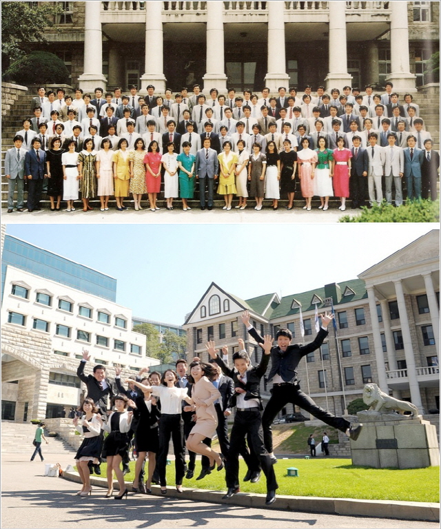 지금은 졸업식 날이라도 동기끼리 모이기도 힘들뿐더러 다 함께 사진을 찍는 일도 보기 드물다. 졸업 앨범 촬영을 위한 한 장이 전부다. 권 팀장은 “교수님을 가운데 모시고 모두 함께 마지막 추억을 남기는 것이 정형화된 졸업풍경이었다”고 전했다. 앨범에 실리는 모습은 지금도 크게 다르진 않다. 다만 유행에 따라 좀 더 ‘재미있는’ 포즈의 사진들이 함께 실리게 됐다.