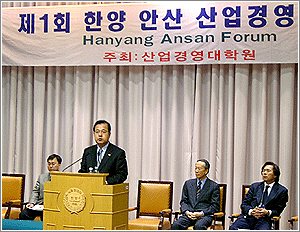 지난 29일 안산캠퍼스 학생회관 소극장에서는 산업경영대학원에서 주최한 제1회 한양-안산 산업경영포럼이 개최됐다. 산업경영대학원 교수부장 양내원 교수의 사회로 시작된 이날 행사는 김인호 산업경영대학원장의 개회사와 김수삼 한양대학교 부총장의 축사 순서로 진행됐다. 약 1백여 명의 학생 및 교수들이 참가한 이번 행사에서 신성우(공학대·건축) 교수 외 4명의 교수들은 향후 안산캠퍼스 교육 개선 방향에 대한 발표를 진행했다.