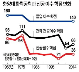 | ▲ 한양대 화학공학과 전공 이수 학점 변화 (이미지 출처 : 11일자 한국경제) | ||