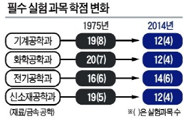 | ▲ 필수 실험과목 학점 변화 (이미지 출처 : 11일자 한국경제) | ||