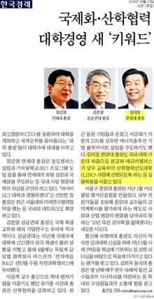 23일자 <한국경제>에는 최고경영자(CEO)를 표방하며 대학을 개혁하고 세계순위를 끌어올리는 '파워 총장'들이 소개되었는데요. 그 중에서 임덕호 한양대 총장은 국내 대학 가운데 처음으로 본교와 에리카캠퍼스가 모두 교육부의 산학협력선도대학(LINK) 사업에 선정되도록 하는 등 실용학풍을 이끌고 있는 인물로 소개되었습니다.