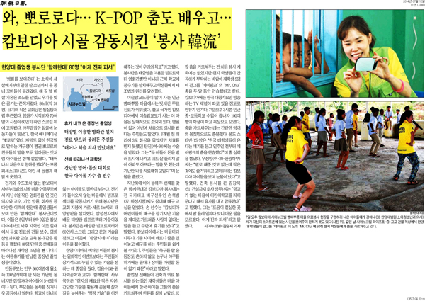 한양대 동문봉사단 '함께한대'는 지난 5일부터 8박 9일간 캄보디아에서 봉사활동을 펼쳤습니다. 무료 진료, 건축 봉사, K-POP 춤 강습 등 다채로운 활동을 진행한 봉사 단원들은 "도움이 절실한 곳에서 땀 흘려 일하다 보니 더운 줄을 모르겠다"며 "이게 진짜 피서"라고 입을 모았는데요. 이같은 봉사활동 현장의 따뜻한 모습이 12일자 <조선일보>를 통해 전해졌습니다.