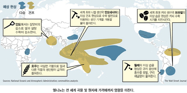 엘니뇨는 대개 여름철에 발생해 겨울철에 최성기를 맞이한다. 이어지는 봄이나 여름에 쇠퇴한다. 엘니뇨가 발생하는 해에는 전반적으로 강우량이 줄고 겨울이 비교적 따뜻하다. 다음 해 여름에는 폭우가 이어진다. 태평양 북쪽 끝자락에 위치한 우리나라는 적도 인근 지역보다는 비교적 엘니뇨의 직접적인 영향을 덜 받는다. 하지만 동남아시아, 호주, 미국, 남미연안지역 등 태평양 연안지대는 얘기가 달라진다. “엘니뇨가 발생하면 주로 홍수, 가뭄, 폭염, 한파 등 이상기변이 일어납니다. 엘니뇨는 태풍의 발생위치와 진로에도 영향을 미치죠. 하지만 자연은 비선형적이기 때문에 항상 같은 피해가 일어난다고 말할 수는 없습니다.”