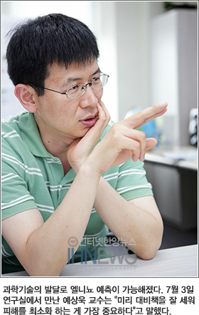 자연 현상을 막을 수는 없다. 하지만 엘니뇨가 예측 가능한 만큼 피해를 대비할 수 있다. 예측을 정확히 하면 피해를 가늠할 수 있으니 미리 대비책을 세워 피해를 최소화 하는 게 중요하다. 예 교수는 “엘니뇨가 기후 분야 연구자들에게는 가장 큰 이슈”라고 말한다. 산업에도 적지 않은 영향을 주기 때문. 특히 기후의 영향을 직접적으로 받는 농업의 경우는 곡물가격이 폭등할 수 있다. 예 교수는 건설 분야를 예로 들었다. “대규모 토목 공사에서 해상건축물을 지을 때 파도나 파랑에 대비해서 설계해야 합니다. 엘니뇨가 발생했을 때 태풍의 강도 등이 달라질 수 있기 때문에 최악의 상황을 고려해야 하죠. 현재 해수면 높이가 지속적으로 상승하기 때문에 기존 건설된 교량, 방벽 등을 다시 건설해야 한다는 게 화두입니다.”