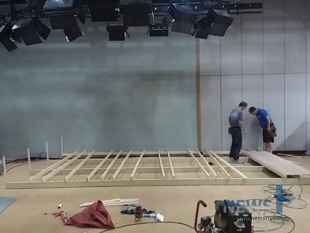 | ▲ 1. 크로마키 설치를 위한 바닥 공사 진행중. 일종의 무대가 될 곳이다. | ||