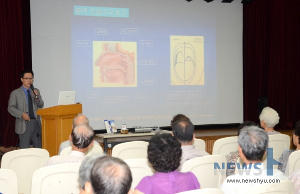 한양대학교구리병원(원장 김경헌)은 지역주민의 건강한 삶에 대한 이해를 돕고, 삶의 질을 높이기 위해 지난 8월 8일 구리보건소 지하 1층 강당에서 ‘코골이와 수면 무호흡증’을 주제로 건강강좌를 개최했다.