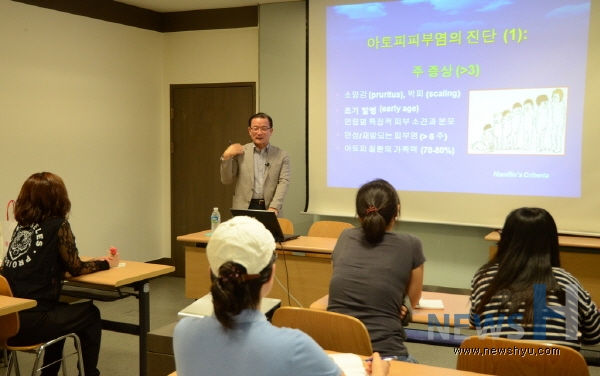 이날 강좌에서 소아청소년과 오재원 교수는 “소아아토피피부염은 자라면서 자연스럽게 없어진다고 생각하는 분들이 있는데 소아아토피는 가려움증으로 인해 수면장애를 일으켜 아이의 성장이 방해되고, 비염이나 천식 등을 동반하기 때문에 평소 생활관리가 중요하다”고 전했다.