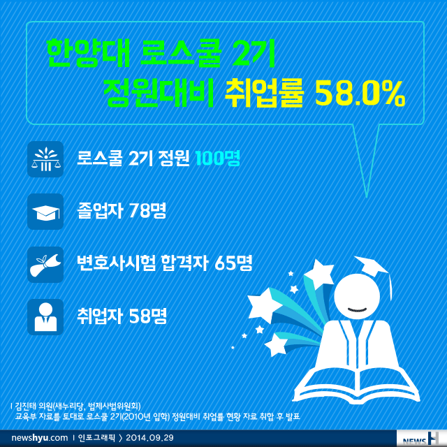 김진태 의원(새누리당, 법제사법위원회)이 교육부 자료를 토대로 로스쿨 2기(2010년 입학) 정원대비 취업률 현황 자료를 취합해 발표했다.