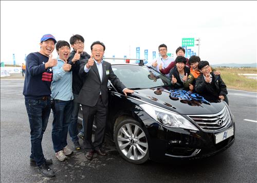 | ▲ 자율주행자동차 경진대회에서 우승을 차지한 한양대팀(사진 출처 : 연합뉴스) | ||