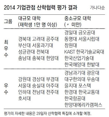 | ▲ 2014 기업관점 산학협력 평가 결과(출처 : 동아일보 기사) | ||