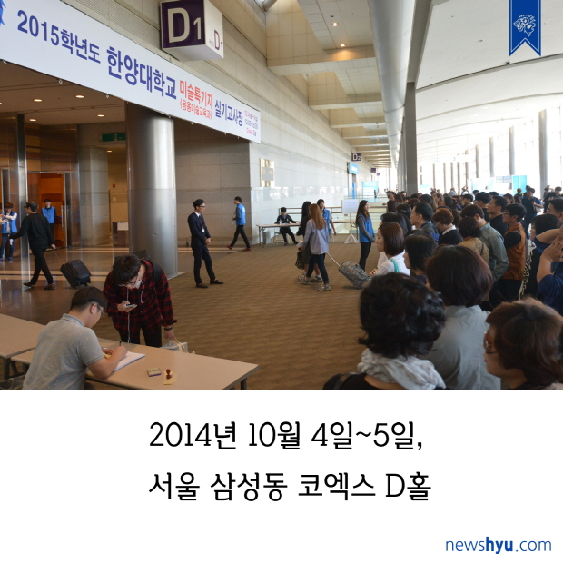 10월 4일과 5일 양일간 진행된 2015학년도 한양대학교 미술특기자 실기고사 현장 사진이 페이스북을 통해 공개되었습니다. 엄청난 경쟁률과 더불어 코엑스에서 고사 실시라는 초유의 상황이 사진에 고스란히 담겨 있어 큰 인상을 주네요. 함께 보시죠.