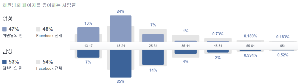 | ▲ 한양대 팬의 성별, 나이별 분포도 (2014. 10. 24 기준) | ||