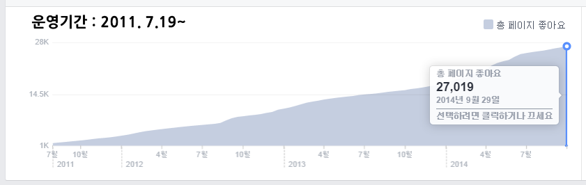 | ▲ 페이스북 개설 이후 최근까지의 팬수 변화 | ||