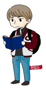 | ▲ 고교생이 본 대학별 대학생 이미지 중 한양대학교 학생의 이미지를 캐릭터화 한 모습(한잡스, 뚝심있게 어려운 전공책을 파고드는 공학도) | ||