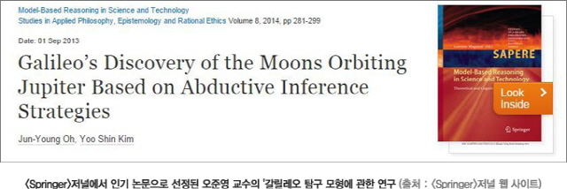 많은 연구들이 진행 중이지만 오 교수가 중점적으로 관심을 기울이는 분야는 갈릴레오 갈릴레이의 탐구모형에 관한 것이다. 갈릴레오는 기존의 관점을 뒤집는 자신의 가설에 대해 이론적 믿음을 갖고 관찰에 임했고, 결국 다수의 증거를 확보하여 자신의 논리를 증명해냈다. 이 같은 탐구 방식을 ‘이론 의존적 관찰방법’이라 한다. 이 방법은 현대 과학자들도 사용하고 있지만, 갈릴레오가 사용했던 방식과는 다른 부분이 있다. “갈릴레오는 진리로 여겨지던 기존 이론(천동설)을 부정하고, 자신의 믿음(지동설)에 따라 관찰을 수행했습니다. 하지만 현대과학의 경우 너무나 전문화, 고도화 됐기 때문에 사실상 연구를 수행하는 학자 또는 학생들이 그러한 이론적 전제를 부정하기가 쉽지 않습니다. 그래서 갈릴레오처럼 틀 자체를 전환하려 하기보다는 오히려 이미 만들어진 틀 속에서 모형을 정교하게 다듬으려는 노력만 가하고 있죠.” 오 교수는 이런 한계에 주목하여, 갈릴레오의 탐구모형을 실제 학생들의 교육에 적용시킬 방법을 찾고 있다. 김유신 교수와 함께 연구한 갈릴레오 갈릴레이의 탐구모형에 관한 논문(Galileo's Discovery of the Moons Orbiting Jupiter Based on Abductive Inference Strategies)은 세계적인 과학·기술·의약 분야 전문 출판사인 [springer]의 인기 있는 논문으로 선정되기도 했으며, 이 연구는 최근 4년간 [ssci]저널에 4편, [scopus]에 4편, [springer]의 'book chapter'에 3편이 등재됐다.