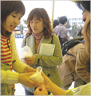 지난 6일 양 캠퍼스에서는 작은 떡 잔치가 벌어졌다. 개강을 맞은 학생들을 위해 각 캠퍼스 총학생회에서 준비한 이번 행사는 매 학기 시작을 알리는 신호탄 역할을 해 온 개강잔치. 이 날 서울캠퍼스에서는 오전 11시와 오후 4시부터, 안산캠퍼스에서는 정오부터 떡을 나눠주며 2004학년도 개강을 자축했다.