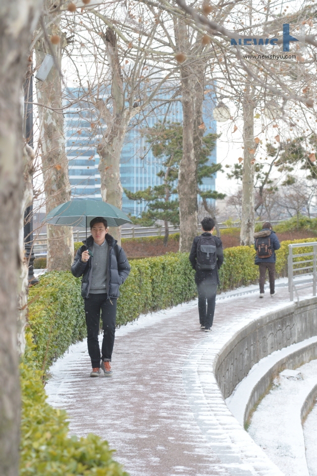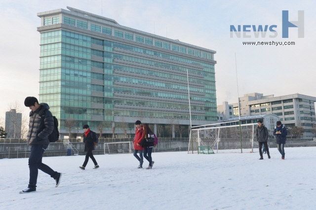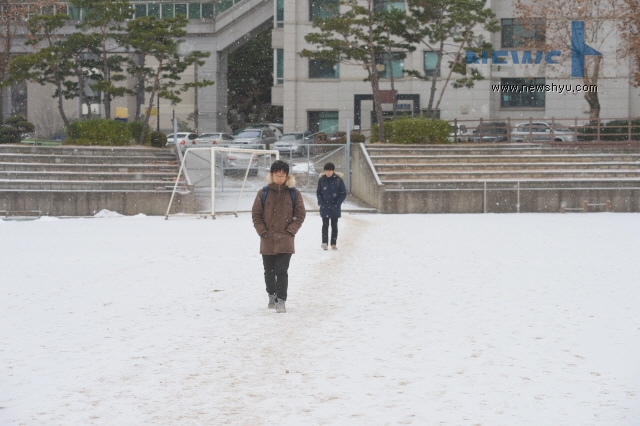 | ▲ 3일 오전 서울 성동구 한양대 운동장에서 학생들이 눈을 맞으며 발걸음을 재촉하고 있다. | ||
