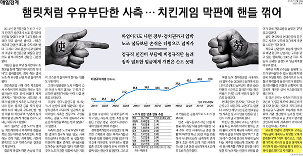 4일자 <매일경제>에는 임금체계 개편에 대한 기업측의 노력이 필요하다는 내용이 전해졌습니다. 사측이 직무급이나 성과급을 도입해서 호봉제를 없애야 기업 생산성이 높아질 텐데, 어떻게 직무를 나누고 평가할 것인지에 대한 고민이 부족하다는 것입니다. 유규창 경영학부 교수는 "직무급에 대해서는 다양한 오해가 존재한다"며 "직무 평가요소, 기준, 평가주체, 점수화 등 많은 영역에서 우리에게 맞는 방법을 찾기 위한 노력이 필요하다"고 지적했습니다.