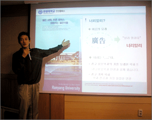언정대 풍물 동아리 ‘한우리’의 신명나는 공연과 함께 시작된 ‘언정 엑스포’는 자신이 원하는 동아리를 찾는 새내기들의 분주한 발걸음과 한 명이라도 학회에 가입시키려는 선배들의 열기로 4일 내내 뜨거웠다. 엑스포 첫날인 15일에는 광홍과 비평학회인 ‘꺼리나누기’와 컴퓨터학회 ‘C.C’의 학회 홍보 순서가 마련됐고 신방과 방송반 ‘HJBS’의 환영 방송제가 열렸다. 둘째 날에는 언정대 영상 비평 학회인 ‘열린 눈’과 축구 동아리 ‘F.C off’의 홍보가 있었다. 특히 영상 비평 학회 ‘열린 눈’은 새내기들에 대한 관심을 ‘온 몸’으로 표현하는 영상을 보여줘 큰 호응을 얻기도 했다. 이밖에도 신방과 학회 ‘언론 세상’, 정사과 학회 ‘왕눈이’와 ‘마이다스’, 광홍과 학회 ‘이미지’와 ‘너리알리’ 등의 소개가 이어졌다.