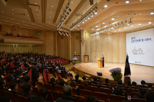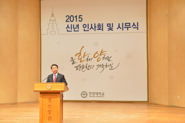 지난해 어려운 여건 속에서도 우리 한양은 많은 성과를 거두었습니다. 그 성과들은 우리 모두에게 자부심을 안겨 주었고, 함께 마음을 모으면 바꾸어낼 수 있다는 자신감도 안겨주었습니다. 우리가 거둔 성과도 중요하지만, 혁신에 대한 우리의 생각에 변화가 생기기 시작했다는 점에서 저는 2014년을 참으로 의미 있는 해였다고 생각하고 있습니다. 새해를 맞이하며 지난해 우리 한양 가족들이 기울였던 노력에 대하여 감사의 인사를 드립니다.
