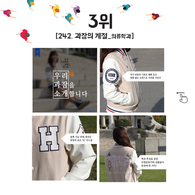 | ▲ [242. 과잠의 계절] 단순 점퍼를 뛰어넘는 그 무엇. 한양대 의류학과 과잠을 통해 살펴봤습니다. https://www.facebook.com/HanyangUniv/posts/851965808171578 | ||