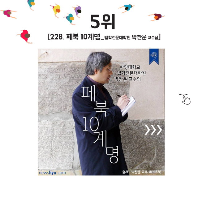 | ▲ [228. 페북 10계명] 법학전문대학원 박찬운 교수님이 페북에 올리신 글을 옮겨봅니다. 모두가 공감하고 즐길 수 있는 페북 문화를 만들어요~ https://www.facebook.com/HanyangUniv/posts/834421856592640 | ||