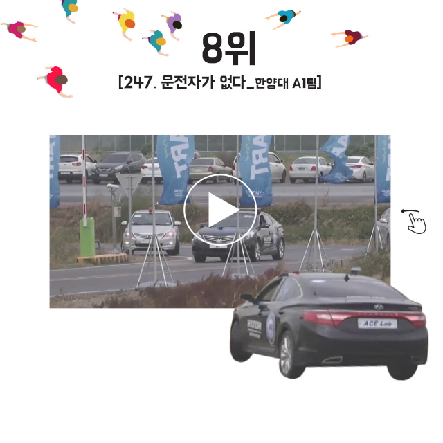 | ▲ [247. 운전자가 없다] 게임중계보다 재밌는 '리얼' 무인자동차 주행 영상을 전격 공개합니다. 대회 3관왕에 빛나는 한양대 A1팀입니다!! https://www.facebook.com/video.php?v=856476471053845 | ||