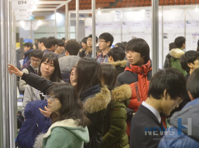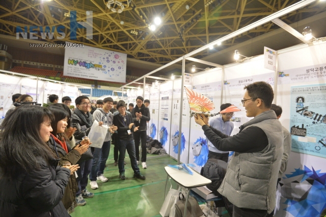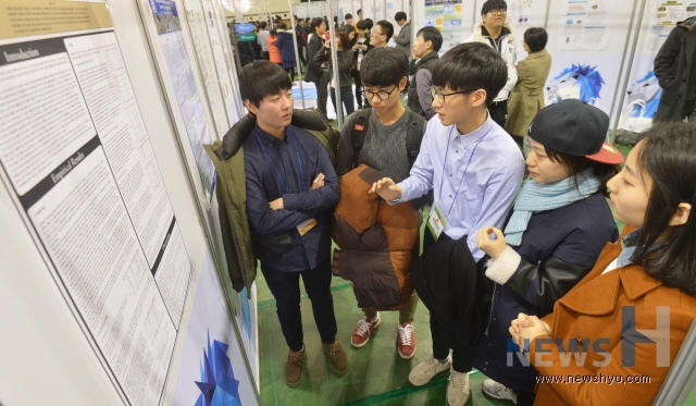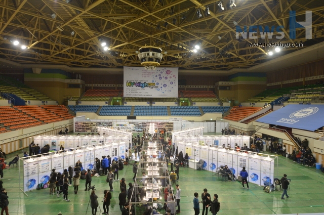 | ▲ '제1회 HY-High 학술대회'에서 관람객들이 서울과 지방의 일반고교 학생들의 다양한 프로그램들을 살펴보고 있다. | ||