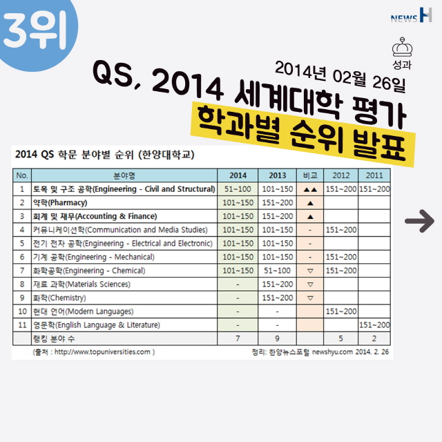 | ▲ [성과] QS, 2014 세계대학 평가 학과별 순위 발표 / 2014-02-26 | ||