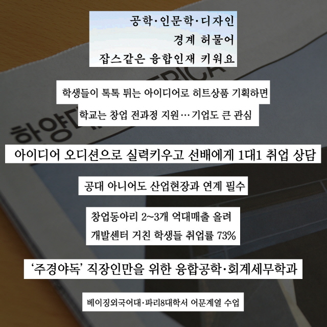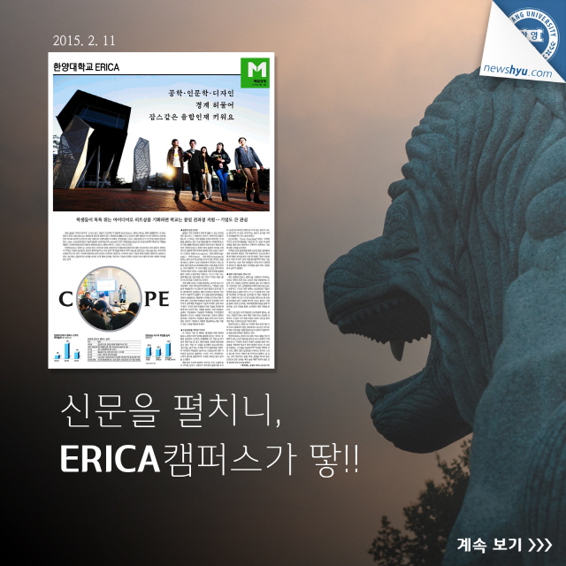 무심코 신문을 보다가 커다랗게 한양대 기사를 발견하셨나요? 반가운 분들이 많으셨을것 같은데요. ERICA 캠퍼스의 최근 성과와 모습, 그리고 발전의 동력을 살펴볼 수 있는 특집 기사가 22일자 매일경제를 통해 세상에 나왔습니다. 한양대 페이스북에서도 간단하게 소개를 했는데요. 함께 보시죠!