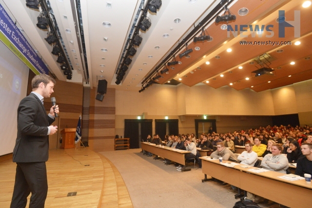 27일 오전 10시 교내 SKT홀에서는 ‘2015학년도 1학기 초청 교환학생 오리엔테이션’이 열렸다. 한양대에 온 교환학생을 대상으로 열린 이번 행사에는 해외에서 온 35개국 400여명의 학생들이 참석했다.