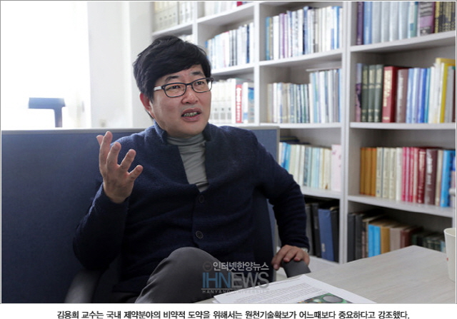 우리나라 제약 산업에서 문제는 독자적인 연구성과가 부족하다는 것이다. 독자적 연구가 불가능하면 해외의 기술을 카피해 아류의 의약품을 만드는 한계에 봉착할 수 밖에 없다. 김 교수는 “FTA로 인해 제약시장이 개방되면서 해외제약회사들과의 경쟁은 사실상 불가능한 실정이다. 이를 극복하기 위해서는 연구를 통한 원천기술의 확보가 필요하다” 며 국내 제약환경의 안타까운 전망과 앞으로 준비해나갈 방향에 대해 설명했다. “세계시장에서 높은 입지를 다지고 우리만의 독자적 기술을 확보하기 위해서는 현대 의약에 발맞추는 새로운 교육이 필요하다. 약학대의 교육은 40년동안 폐쇄적이었다. 현재 변화되는 흐름을 반영하지 못한 교육은 참신한 인재육성과 의약분야의 발전에 걸림돌이 될 것이다” 라며 국내 약학분야의 교육의 문제점을 짚었다. 더불어 김 교수는 약학분야에서 지속적인 연구를 하고 있는 후학들에게 관련분야 논문읽기를 통해, 자신의 분야에 대한 꾸준한 탐색을 당부했다. 연구분야에 대한 새로운 정보와 지식들은 자신만의 고유한 연구 성취의 필수조건이기 때문이다. 무엇보다 가장 중요한 것은 즐기는 자세라며 연구의 종점에서 비약적 도약을 하기 위해서는 바로 자신의 연구분야에 대한 진정성 이라고 설명했다. “고진감래라고 하죠? 아무리 자기가 맡은 연구 분야가 고되고 막막하더라도 즐기는 자세를 가진다면 분명 달디단 성취감을 맛볼 거에요. 무조건 이기는 것이 중요한 게 아닙니다. 후배들이 즐기는 마음으로 진정성을 가가지고 연구를 해나갔으면 좋겠어요”.