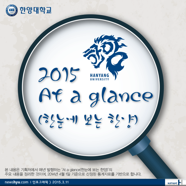 본 내용은 기획처에서 매년 발행하는 ‘At a glance(한눈에 보는 한양)’의 주요 내용을 정리한 것이며, 2014년 4월 1일 기준으로 산정된 통계자료를 기반으로 합니다. (편집자 주)