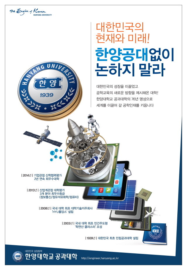 일반적인 대학 광고는 특정 단과대학이나 학과만을 위해 제작되진 않지만 최근 한 언론사의 공대 특집 기획에 맞물려 '한양 공대'를 알리는 광고게 제작되었다. 여러 대학들의 공대가 같이 소개되는 만큼 한양대만의 강점과 자부심을 담는데 촛점을 맞췄다.