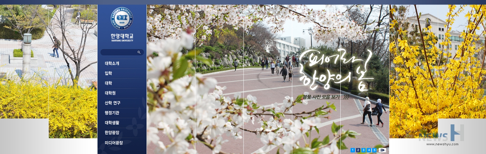 | ▲ 한양대 대표 홈페이지 첫화면을 장식한 4월의 테마가 있는 첫화면입니다. | ||