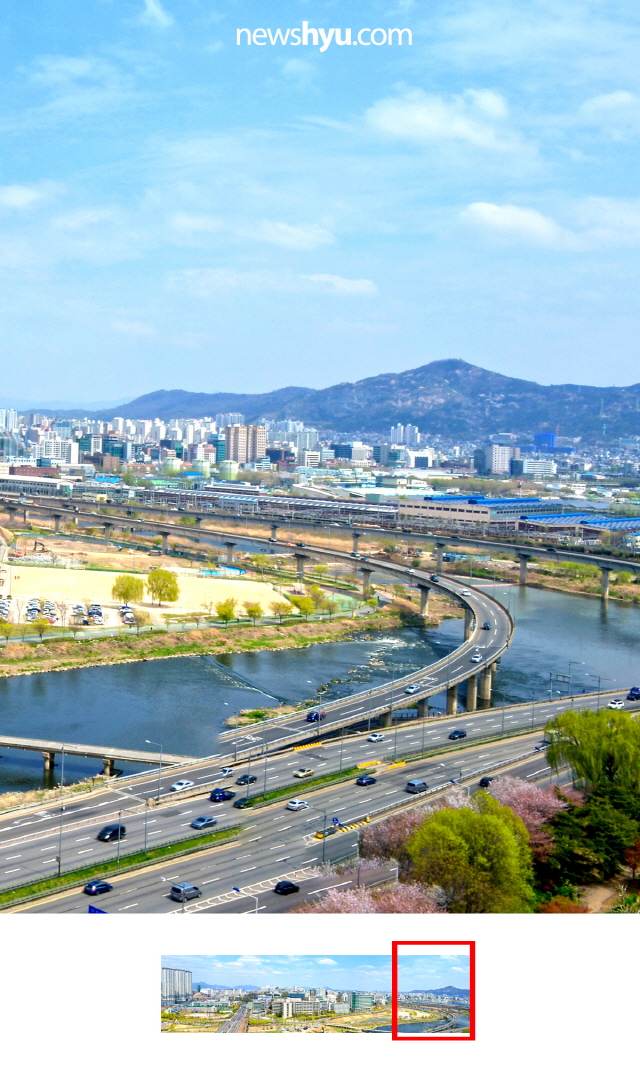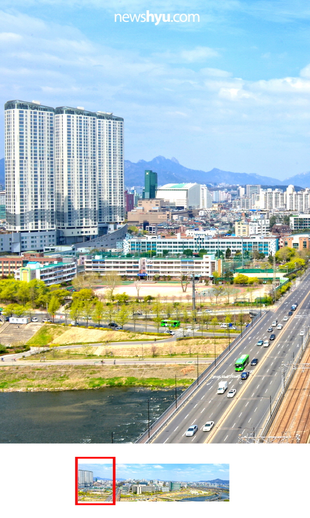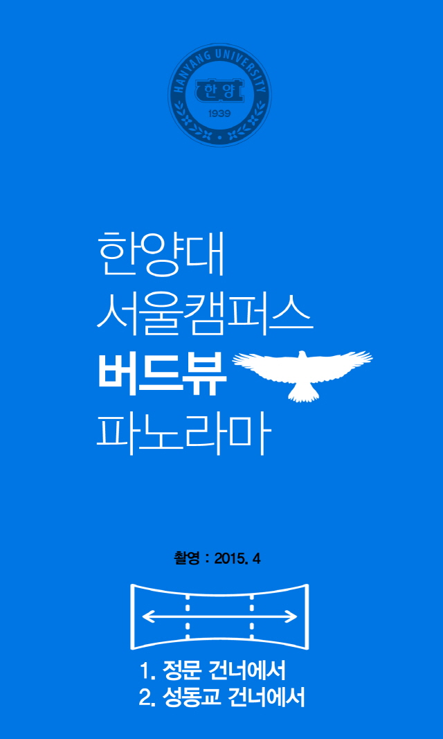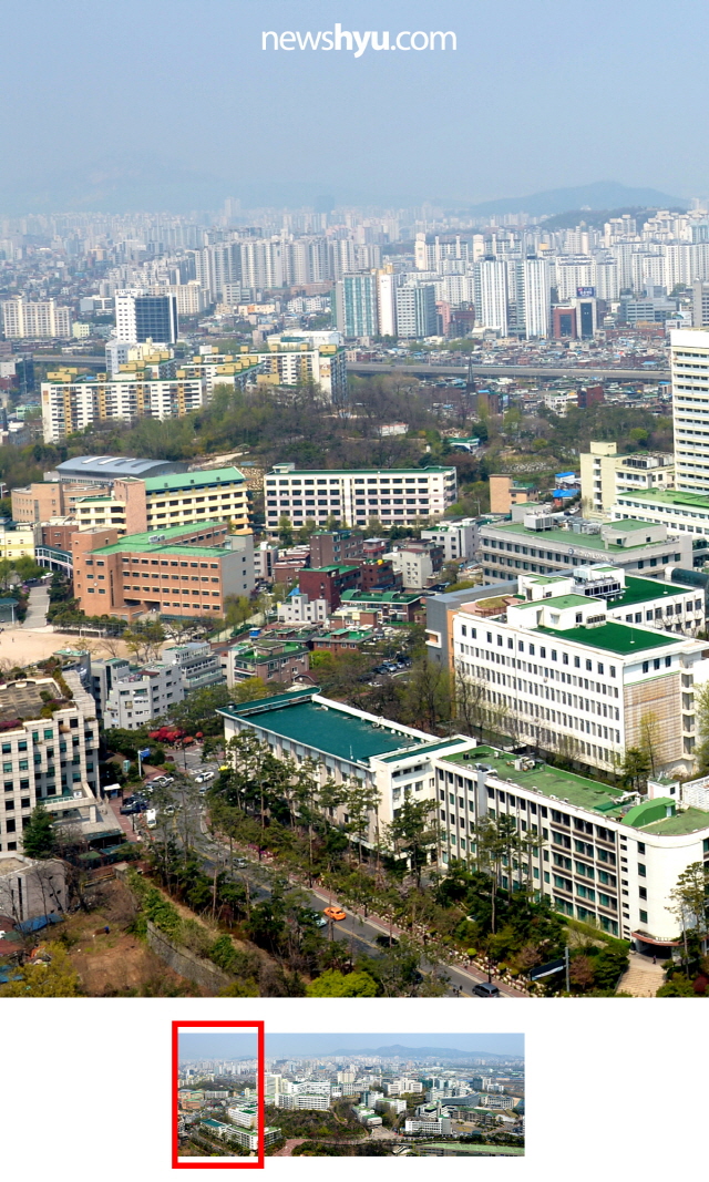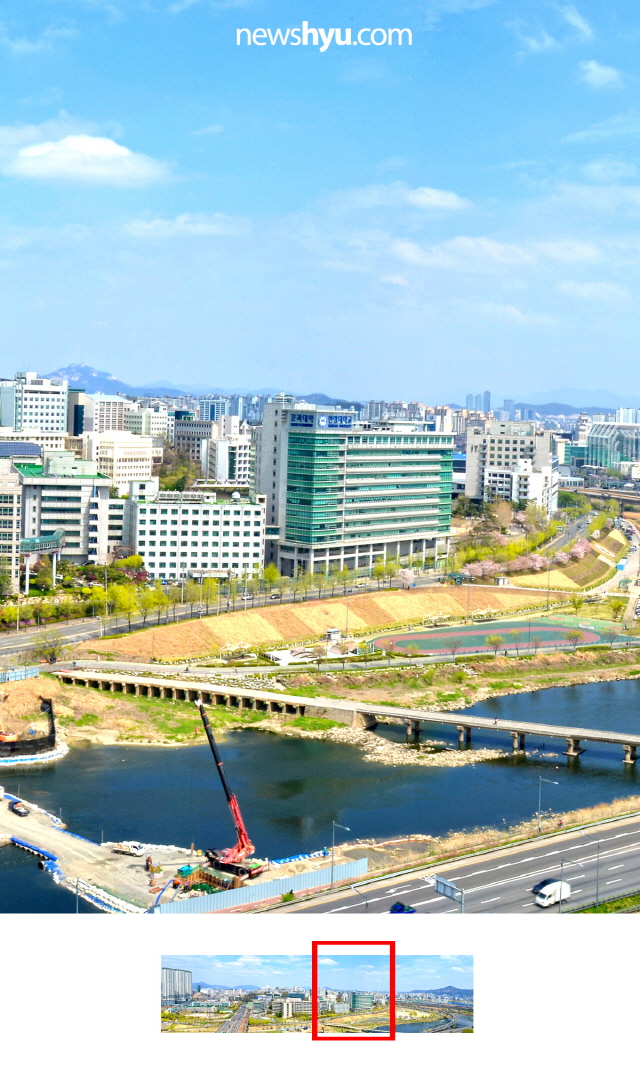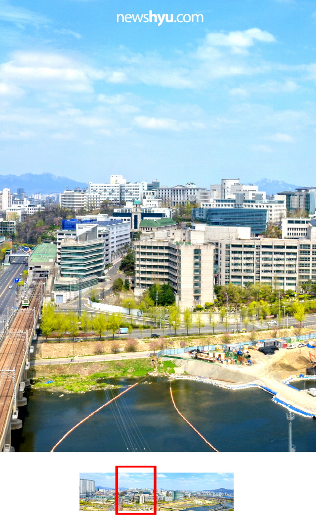 평소에 걸어다닐땐 잘 보이지 않는 캠퍼스 전체 풍경이 높은 옥상에서는 어떻게 보일까? 최근 높은 건물의 옥상에서 본 한양대 서울캠퍼스 풍경 사진을 입수! 이를 온라인에 공개했습니다. 사실 파노라마 사진은 옆으로 길어서 사이즈를 맞추다보면 아주 작게 보일 수 밖에 없는데요, 이를 위해 모바일에 최적화된 방식으로 조각 조각 나눠서 공개를 해봤습니다. 소위 '옆으로 밀어보기' 방식인데요, 페이스북의 경우 여러장의 사진을 올리면 옆으로 넘겨서 계속해서 다음 사진을 볼 수 있도록 한 구조를 활용한 것입니다. 아무래도 이곳 한양뉴스포털보다는 페이스북에서 직접, 그것도 모바일 화면으로 보면 더 실감날 것입니다.
